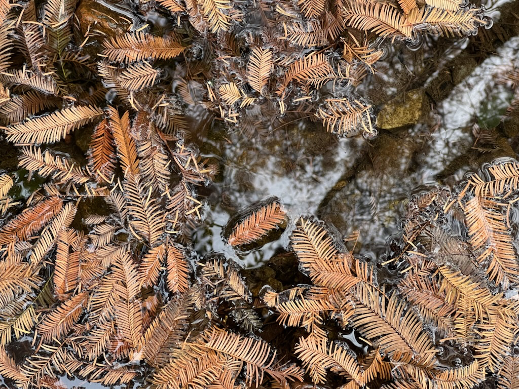 一层,又一层,小溪变得越来越窄,颜色越来越深。