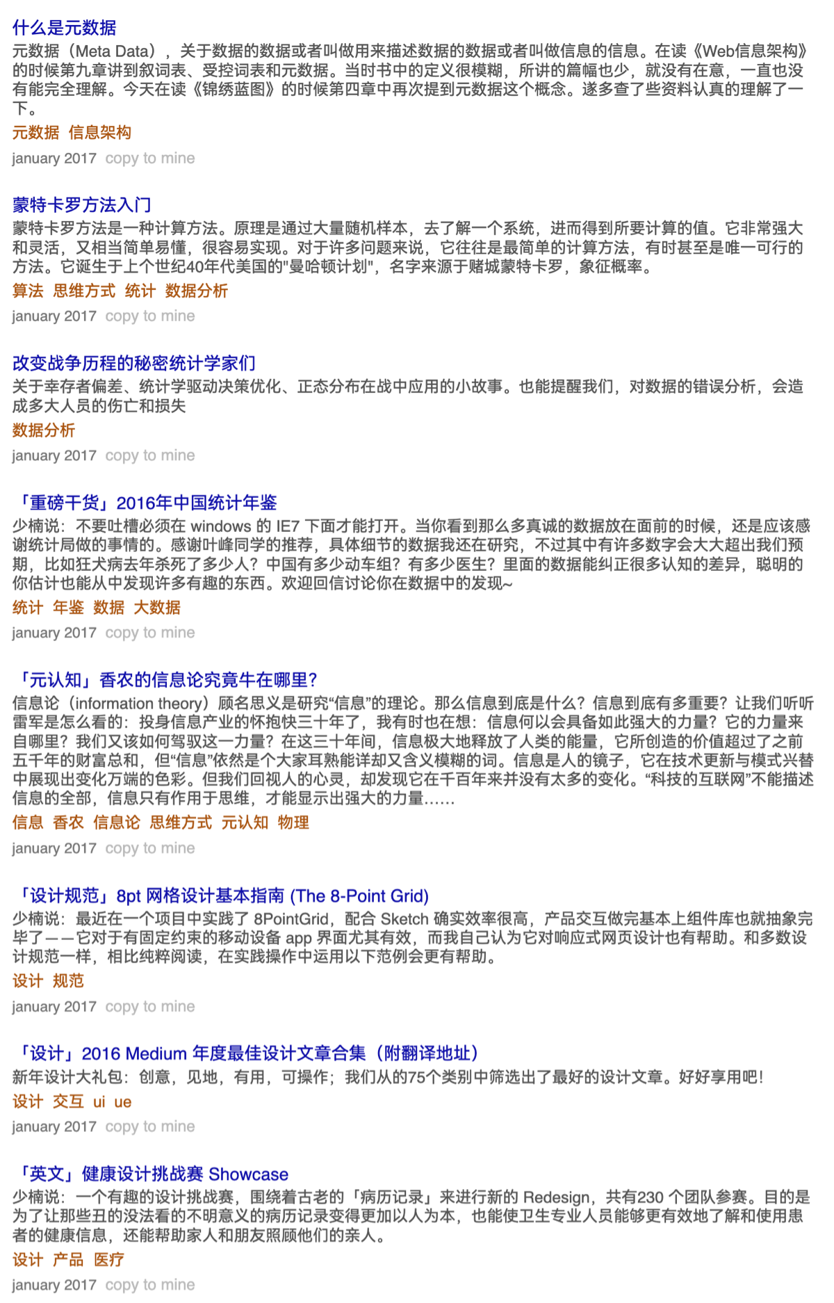 所以当这些内容丢给别人的时候,价值并不高。因为既没有主线,也没有洞见,只能充当猎奇的价值,基本上就是一个共享收藏夹。